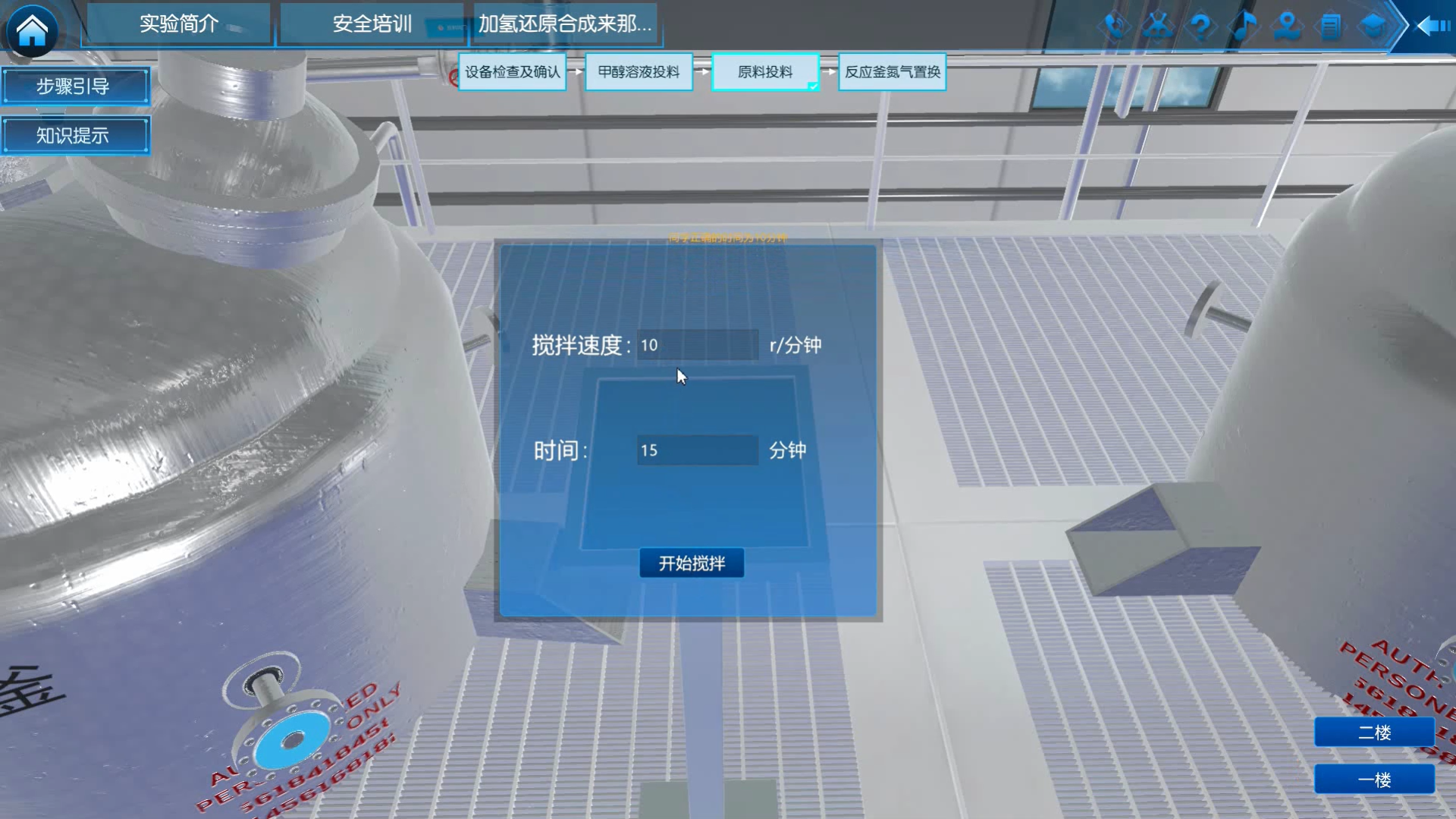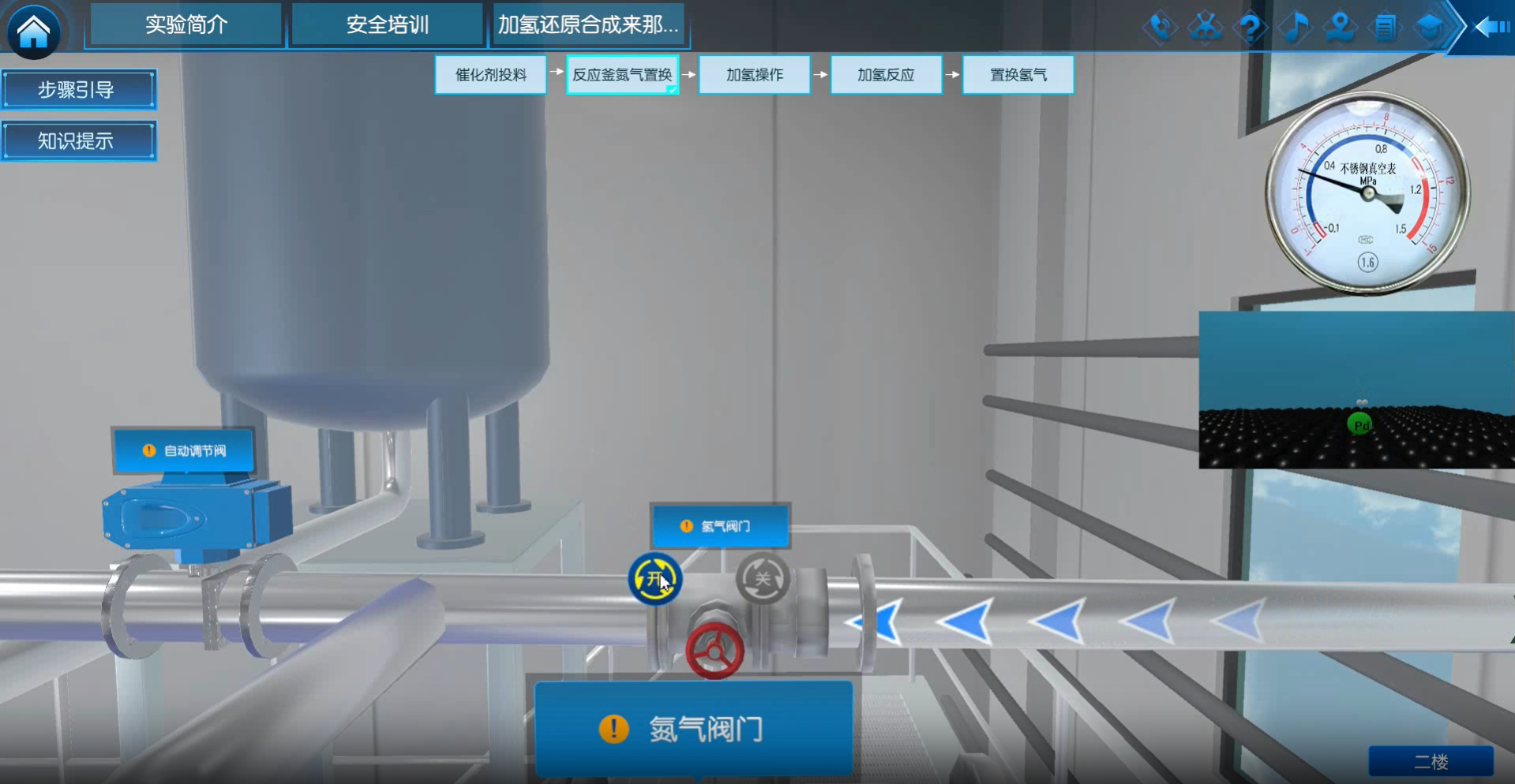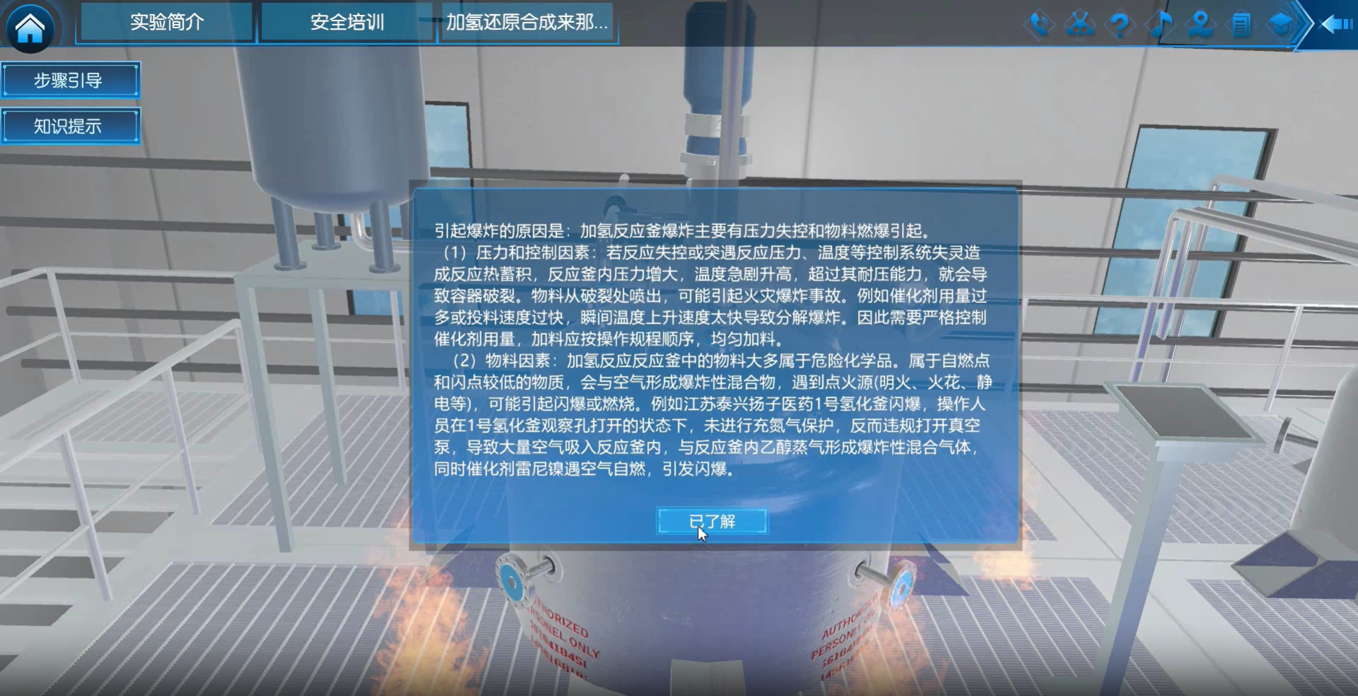 为适用工程教育对实践教学的要求,本项目团队以学生为中心,以医药工程技术人员应该具备的知识、能力和素养为培养目标进行设计和规划,自主开发了原料药高危加氢反应虚拟仿真实验。