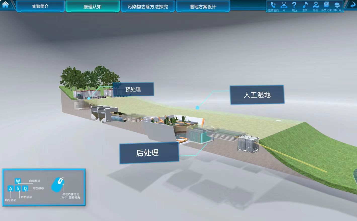 人工湿地实操实验在工艺流程及原理复杂、成本高、消耗大、维护难、环境要求高、较大型综合训练等方面存在的问题,使得学生无法有效地在实验室中开展人工湿地试验的实际操作。而虚拟仿真平台以真实人工湿地工程为原型进行建模和虚拟仿真,利用多种方式展现人工湿地内部结构、净化原理、影响机制和设计流程,为学生提供一个自主、个性化的学习场所。